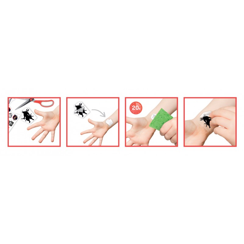בחרו מתוך 75 עיצובים שונים בסגנון מנגה קוואיי והניחו אותם על העור בעזרת ספוגית. הקעקועים זמניים, בטוחים לשימוש ונשטפים בקלות.