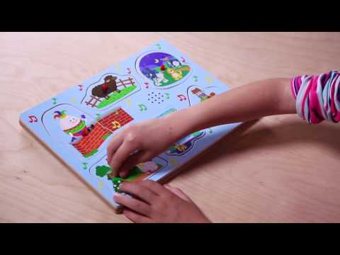 פאזל חלקים למיון והתאמה! שירו יחד עם דמויות ילדות אהובות! התאימו את ששת חלקי הפאזל המאוירים מעץ לתמונות בלוח הפאזל היפיה מעץ כדי לשמוע שישה שירי ילדים שונים.